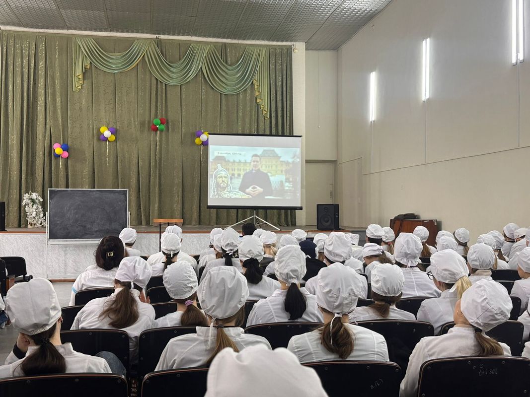 В рамках реализации Цикла занятий «Разговоры о важном» в ГБПОУ РО «ТМК» в группах первого курса специальности «Сестринское дело» было проведено занятие «Год защитника Отечества».