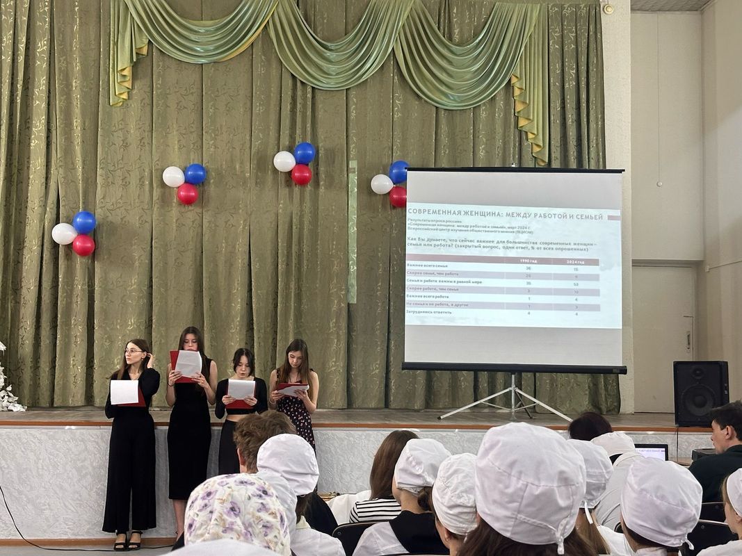 В рамках реализации Цикла занятий «Разговоры о важном» в ГБПОУ РО «ТМК» в группах первого курса специальности «Сестринское дело» было проведено занятие «Международный женский день».