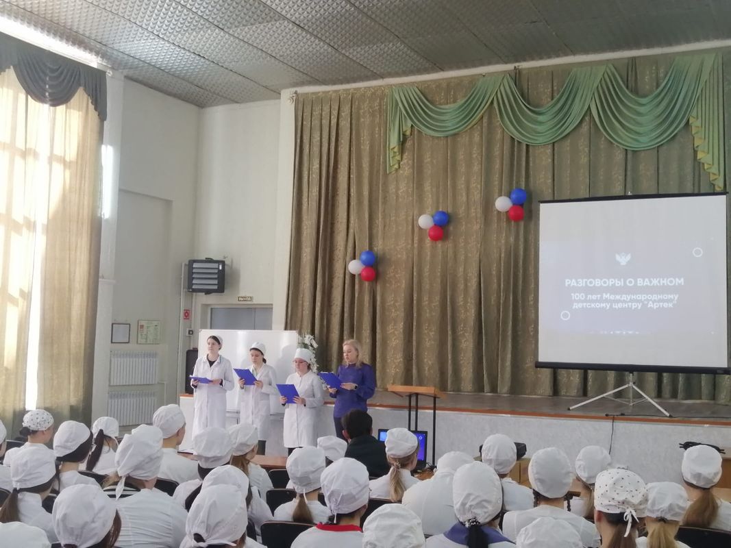 В рамках реализации Цикла занятий «Разговоры о важном» в ГБПОУ РО «ТМК» в группах первого курса специальности «Сестринское дело» было проведено занятие «День воссоединения Крыма и Севастополя с Россией. 100-летие Артека».