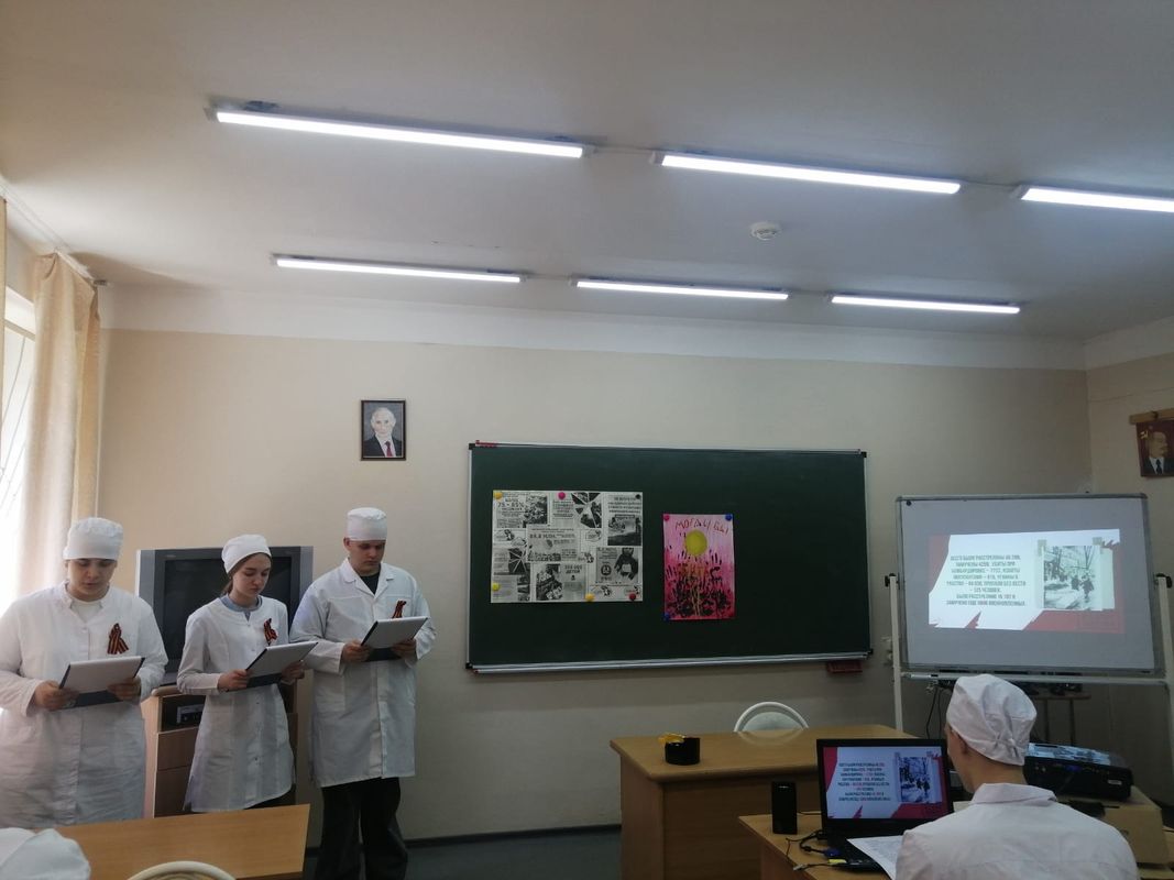 В рамках практического задания члены команды (Белоус В., Гасанова К., Гунько А., Кистанова М., Кузнецова Д., Курочка В., Мулкадаров И., Поддубная К., Чернощекова Д., Чумик Я.) прошли онлайн обучение и под руководством наставника Цыкаловой Т.Ю. организовали цикл мероприятий, для студентов групп 1-1, 1-2, 1-3, 1-4, 1-5, 1-6, 1-7 специальности «Сестринское дело» - провели День единых действий с использованием материалов урока реконструкции проекта «Без срока давности», оформили информационное пространство, организовали просмотры документальных хроник и участие студентов колледжа в онлайн – квизе «Без срока давности» 2025.