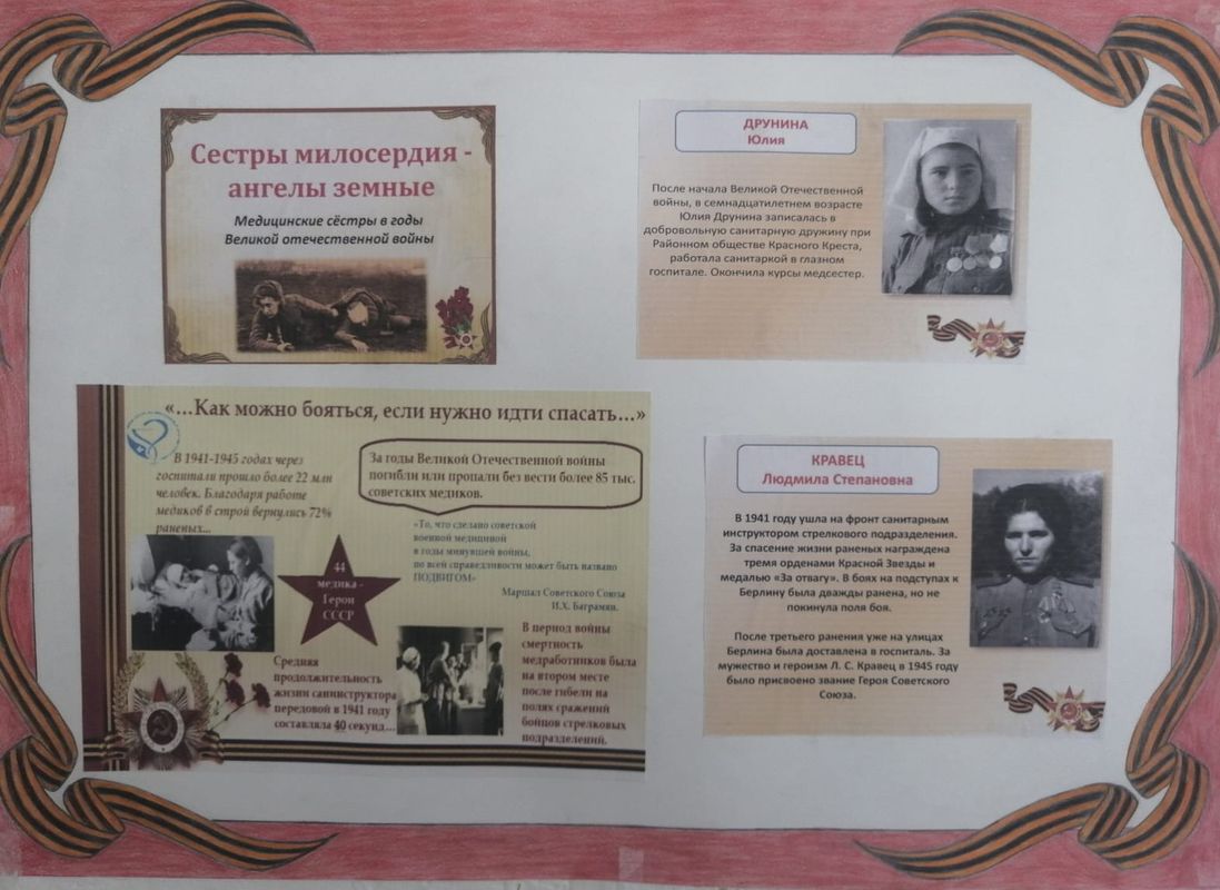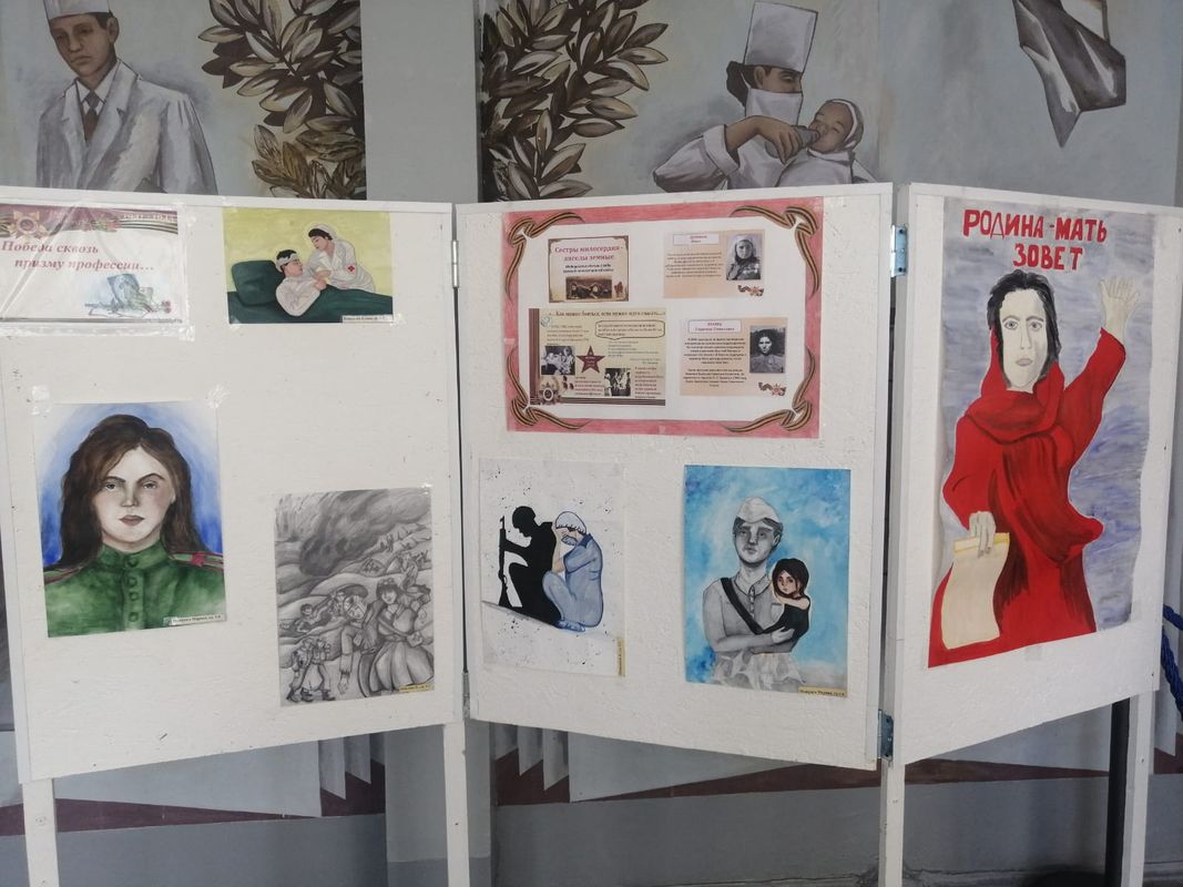 В рамках цикла мероприятий, посвященных 80-летию Великой Победы, в ГБПОУ РО «ТМК» организована выставка «Победа сквозь призму профессии». На выставке представлены художественные рисунки и стенгазеты, иллюстрирующие подвиги военнослужащих и медиков в годы Великой Отечественной войны.