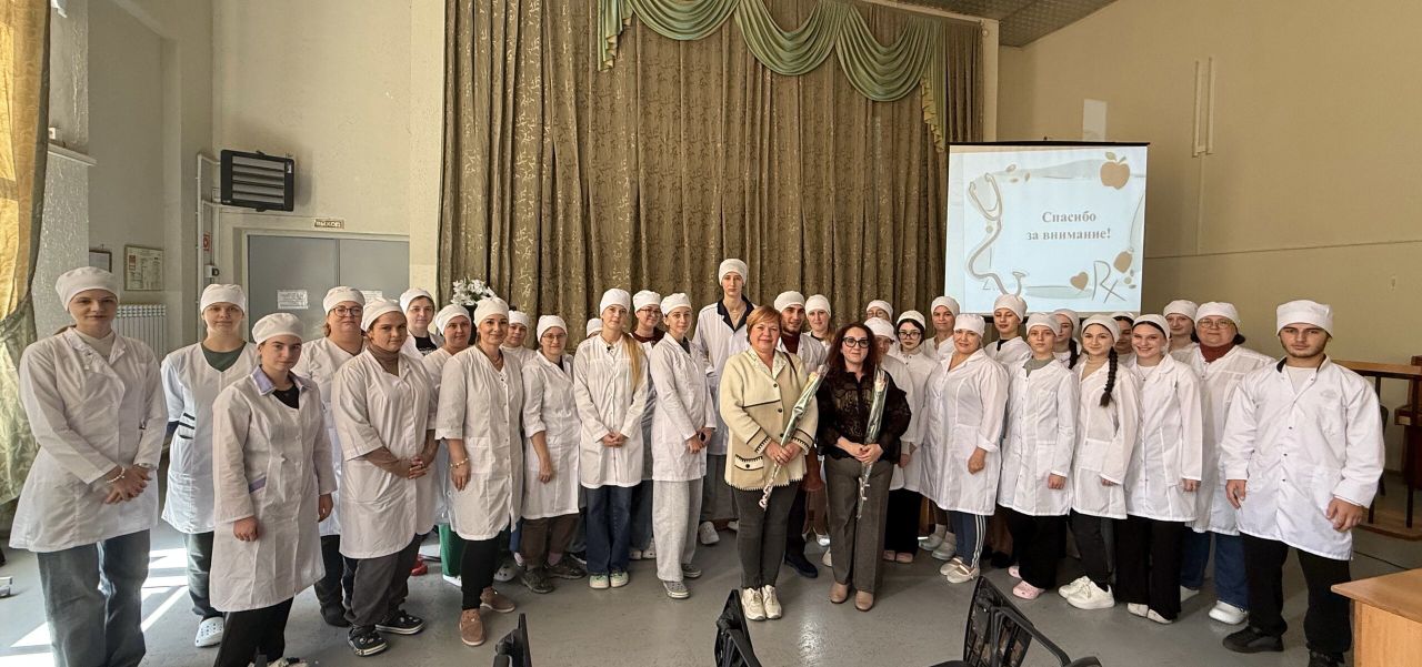 В рамках реализации дня единых действий в ГБПОУ РО «ТМК» в группах первого курса специальности Фармация проведено поточное собрание на тему: «День среднего профессионального образования. История и традиции Таганрогского медицинского колледжа», в ходе которого участники познакомились с историей становления и развития системы СПО и историей колледжа. Мероприятие посетили: заведующая отделением Фармация Балагурова Л.Г., заместитель директора по воспитательной работе Глянцева Т.Н., куратор группы 1-Ф-2.