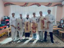 Волонтерская группа студентов ГБПОУ РО «ТМК» специальности «Лечебное дело» и «Сестринское дело» провели для воспитанников МБДОУ «Детский сад № 91 «Паровозик» г.Таганрога первое занятие из цикла «Маленький доктор».