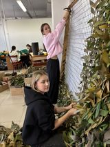 Когда дело касается защиты своей Родины, очень важно иметь при себе арсенал необходимой экипировки. Маскировочные сети широко применяются для маскировки бойцов, вооружения, военной техники и инженерных сооружений на фоне местности и растительного покрова от различных методов разведки противника. Такая сеть может в прямом смысле спасти жизнь. Поэтому студенты групп 2-1 и 2-2 совместно с кураторами групп Католиковой О.С. и Павловской М.Ю., а также преподавателем Зайцевой И.А. решили принять участие в таком важном деле. Мастерская работает с утра до вечера. Технология плетения незамысловата, но требует важных тонкостей. Лоскутки режутся под определённым углом и надёжно фиксируется на капроновом шнуре в таком порядке, чтобы потом они могли создавать эффект движения. Работают волонтёры с тканью разных цветов. Основная гамма должна соответствовать ландшафту.