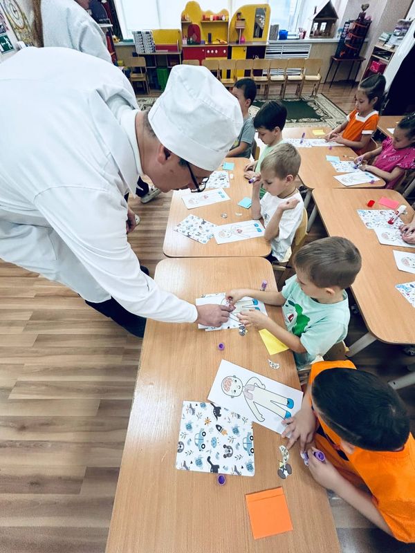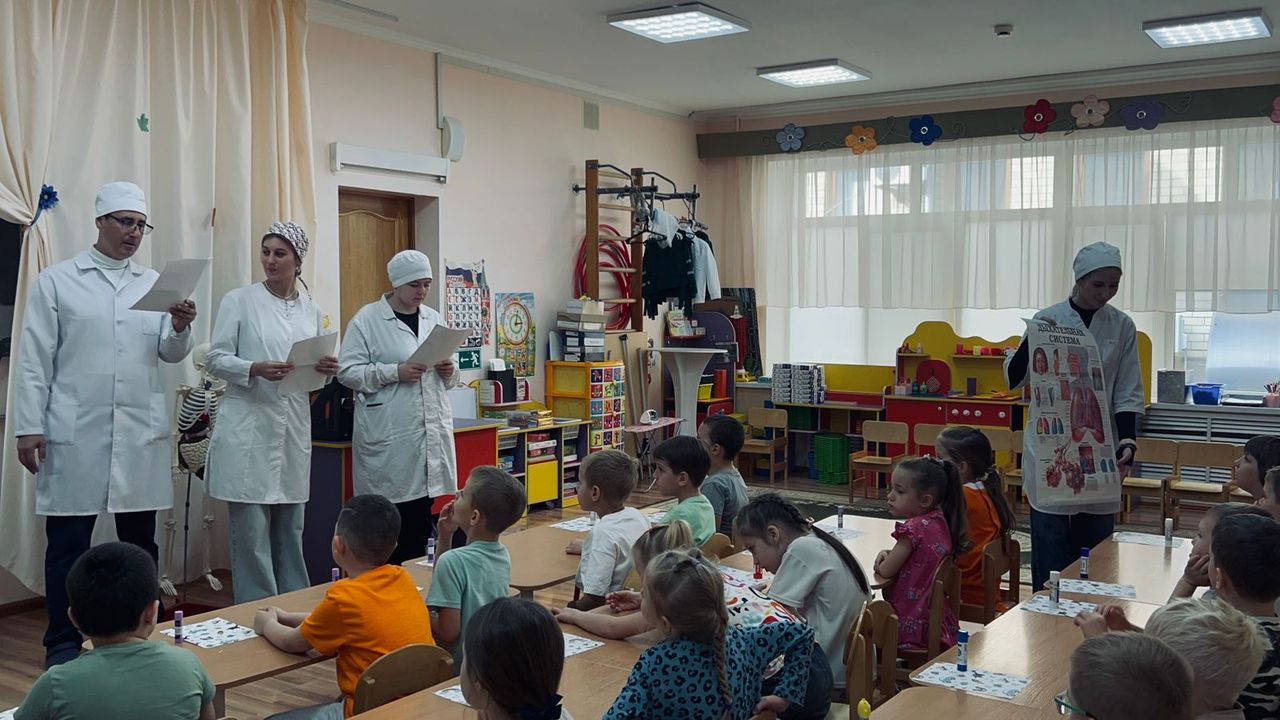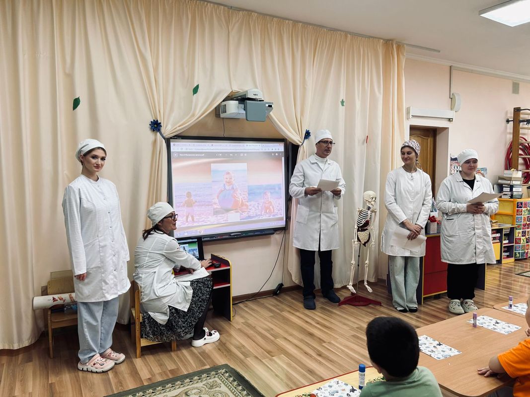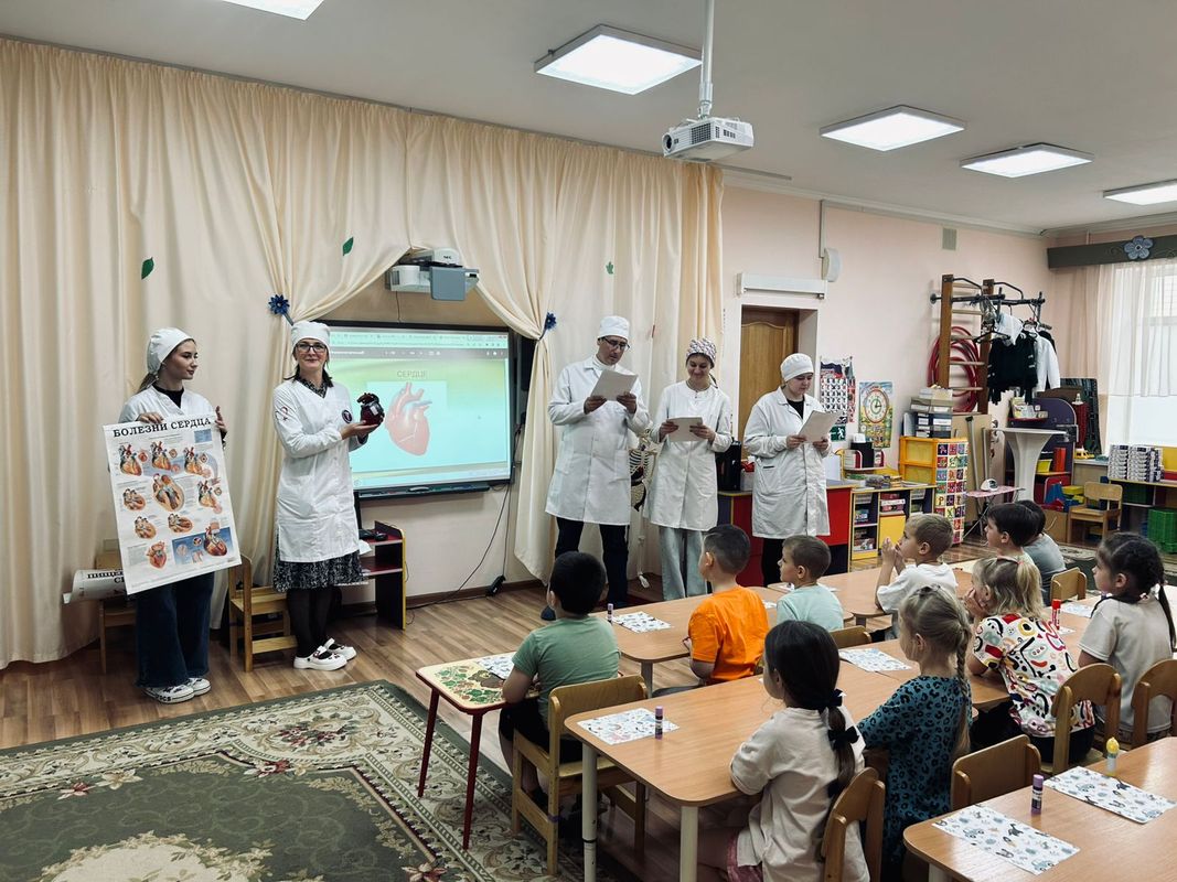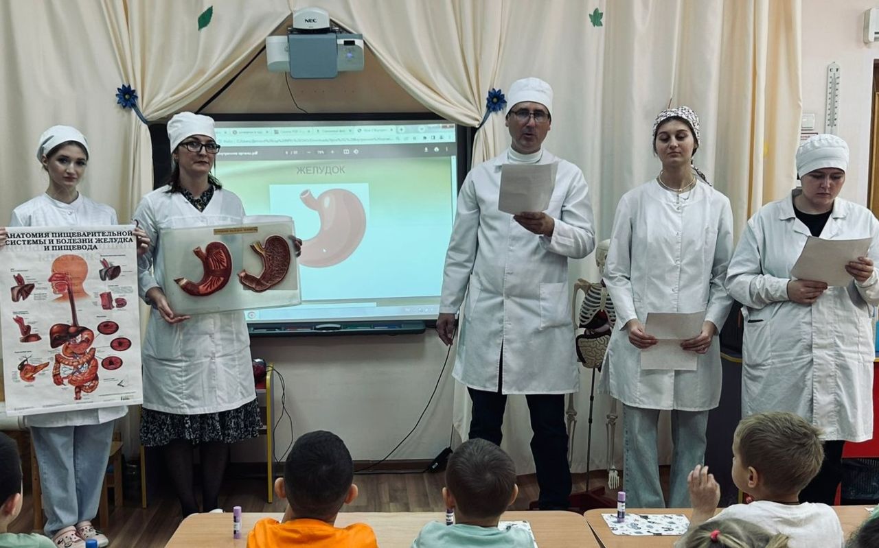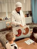 Студенты организоваои игровой урок на тему «Внутренне органы человека» - «Путешествие в свой внутренний мир». Во время занятия волонтеры закрепили с детьми знания первого урока: скелет, мышцы, кожа, а также в игровой форме рассказали, что есть моторчик - сердце, волшебные шары - легкие, химическая лаборатория - желудок и главный компьютер - мозг. Студенты провели мастер-класс «Аппликация» и организовали физкультминутку. Встреча оказалась очень яркой, веселой и эмоциональной, дети с удовольствием выполняли задания и принимали участие в играх.