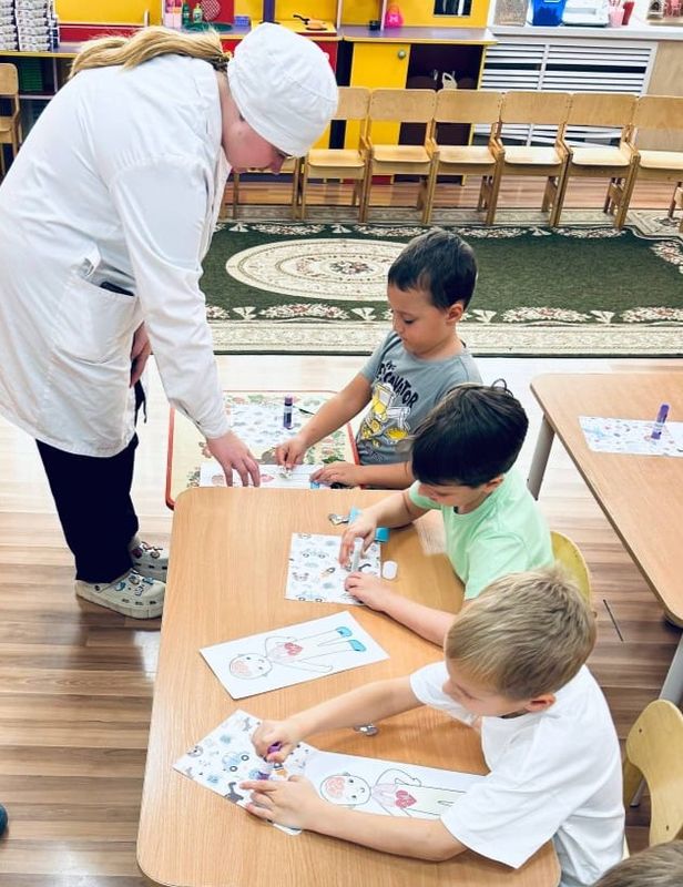 Волонтерская группа студентов ГБПОУ РО «ТМК» специальности «Лечебное дело» и «Сестринское дело» провела для воспитанников МБДОУ «Детский сад № 91 «Паровозик» г. Таганрога второе занятие из цикла «Маленький доктор».