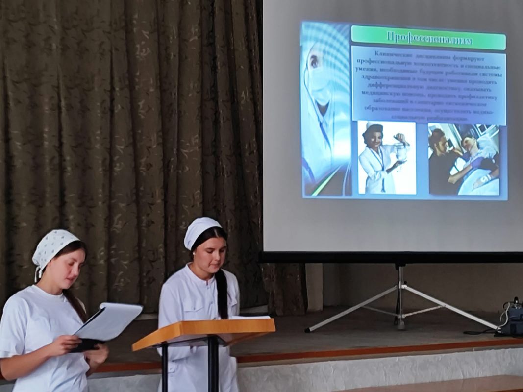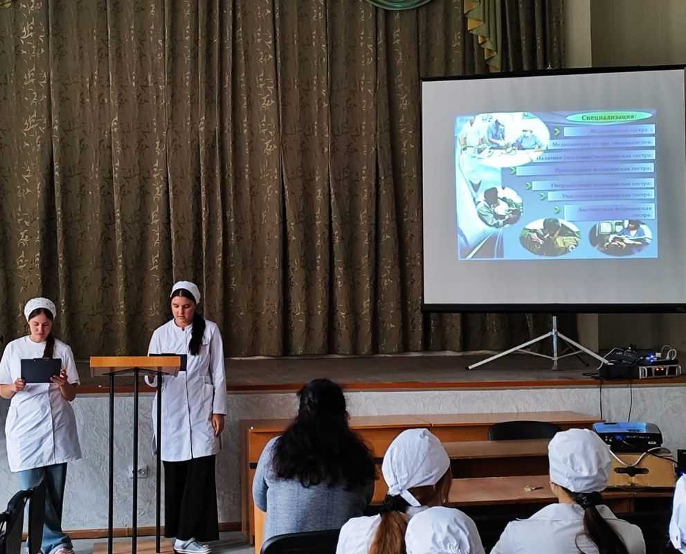Мероприятие проведено активом Движения Первых студентами 2 курса специальности «Сестринское дело» Анастасией Жеребкиной и Екатериной Кузьменко. Они подготовили презентацию и информационный блок, в котором раскрыли специфику выбранной профессии и обозначили ее важность для общества.
