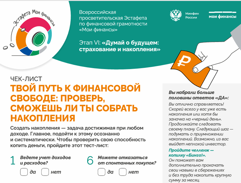 Всероссийская просветительская эстафета «Мои финансы» – это новый масштабный проект по финансовой грамотности для россиян всех возрастов. Он включает в себя цикл информационно – просветительских мероприятий по самым разным темам. События Эстафеты проходят под эгидой ведомственного проекта Минфина России «Мои финансы» во всех регионах России.