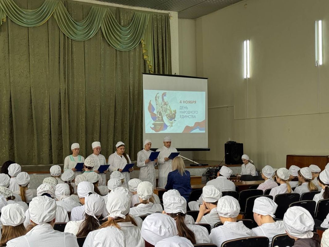 Группа 2-6 с куратором Никипеловой Ю.С. провели поточный час, посвященный Дню народного единства. В ходе мероприятия преподаватели и студенты колледжа узнали, как давно отмечается этот праздник в нашей стране, сколько и какие народы проживают на территории Российской Федерации, услышали об истоках возникновения праздника, истории освобождения Москвы, о смутном времени, о героях, совершивших подвиг, освободив нашу страну от польских захватчиков, о силе православной веры и могуществе русского народа. Студенты представили видеоролики о традициях и обычаях народов России, а так же провели увлекательную викторину, посвященную Дню народного единства. Завершился поточный час общим исполнением уже полюбившейся всеми песней «Матушка».