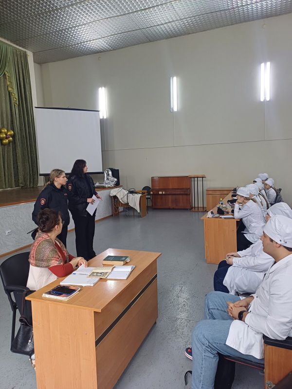21.11.2025г. в ГБПОУ РО «ТМК» была проведена профилактическая беседа с несовершеннолетними студентами. В рамках профилактической операции «Чистое поколение» старший инспектор ПДН ОП-2 УМВД России по г.Таганрогу В.Е. Еременко и инспектор ПДН ОП-2 УМВД России по г.Таганрогу А.А. Кебал встретились с обучающимися 1 курса специальности «Сестринское дело» и рассказали о негативном воздействии наркотических и психотропных средств на организм подростка и об уголовной ответственности за их распространение.
