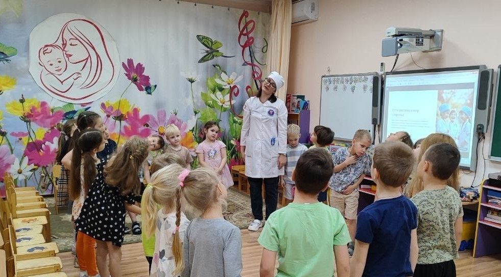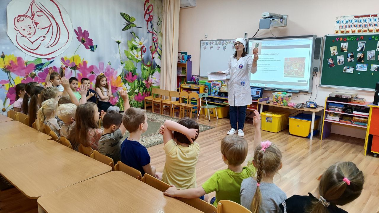 Волонтерская группа студентов ГБПОУ РО «ТМК» специальности «Лечебное дело» провела для воспитанников МБДОУ «Детский сад № 91 «Паровозик» г. Таганрога третье занятие из цикла «Маленький доктор».