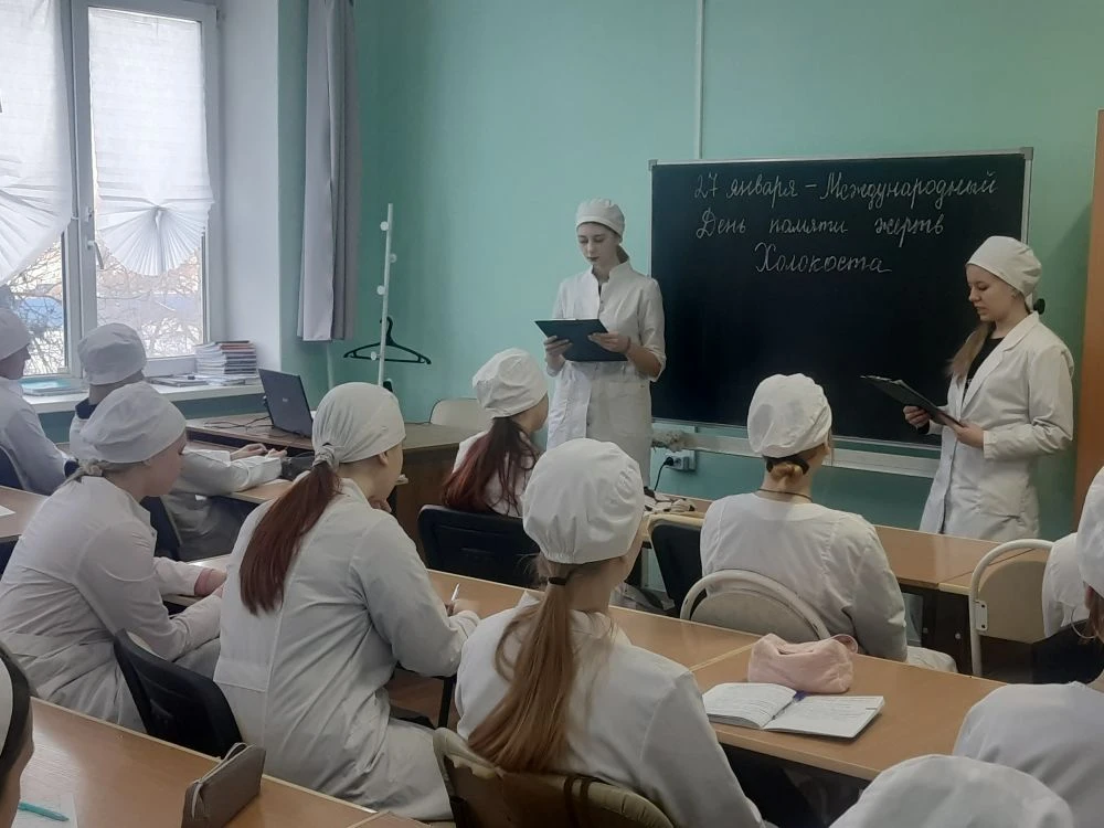 В рамках Дня единых действий в ГБПОУ РО «ТМК» на уроках истории для студентов первого курса специальности «Лечебное дело» и «Сестринское дело» были проведены медиачасы «Холокост - память поколений» с просмотром и последующим обсуждением короткометражных видеофильмов.