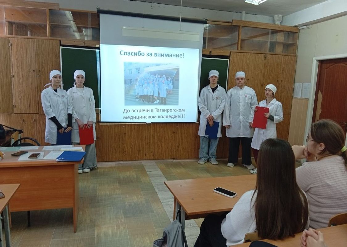 В целях осуществления профориентационной работы волонтерская группа ГБПОУ РО «ТМК» посетила общеобразовательную школу города Таганрога МОБУ СОШ№ 36 и провела мероприятие в формате «Классная встреча».