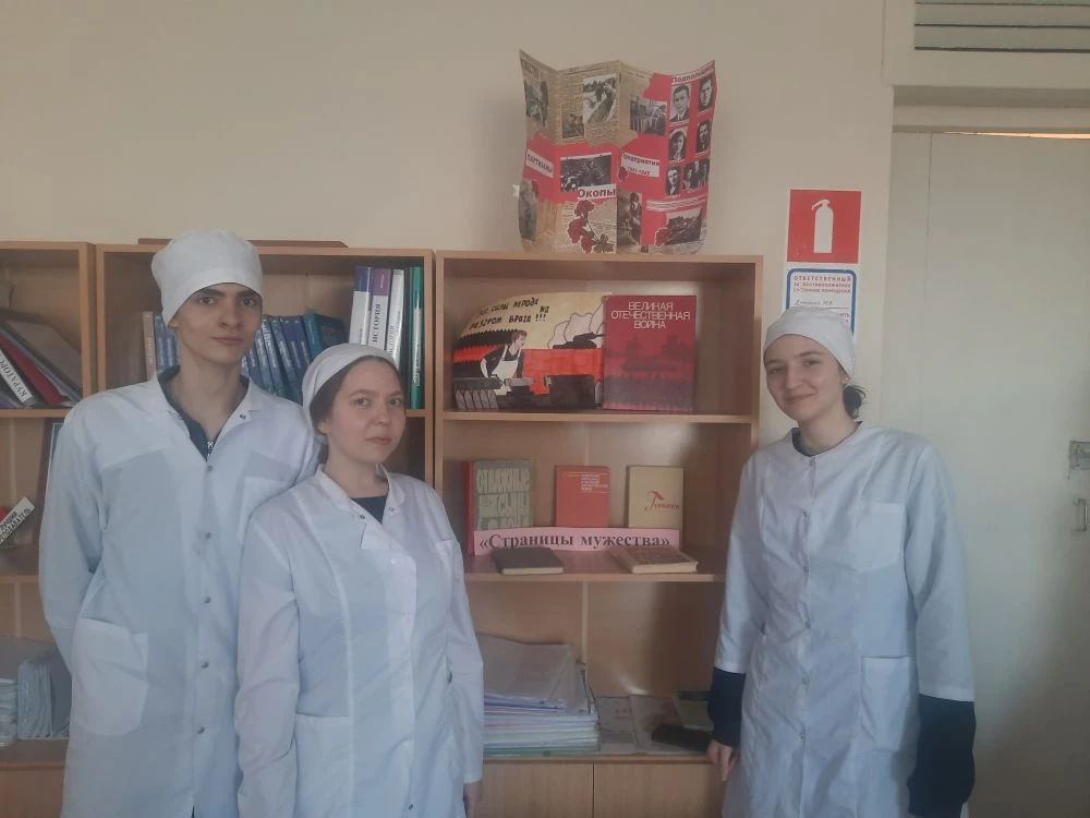 С целью воспитания уважения и ценностного отношения к истории и культуре своего края, своего народа и других народов Россиипроведена акция «Страницы мужества» – при участии библиотеки колледжа организована выставка книг о героях войны, в том числе и родного края.