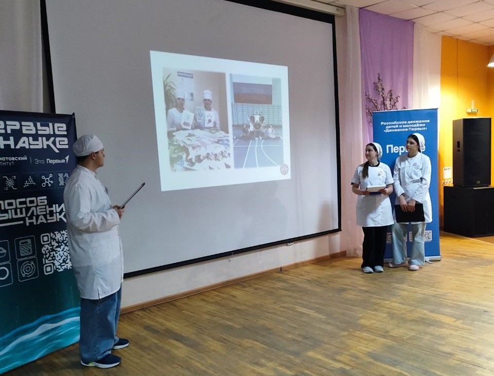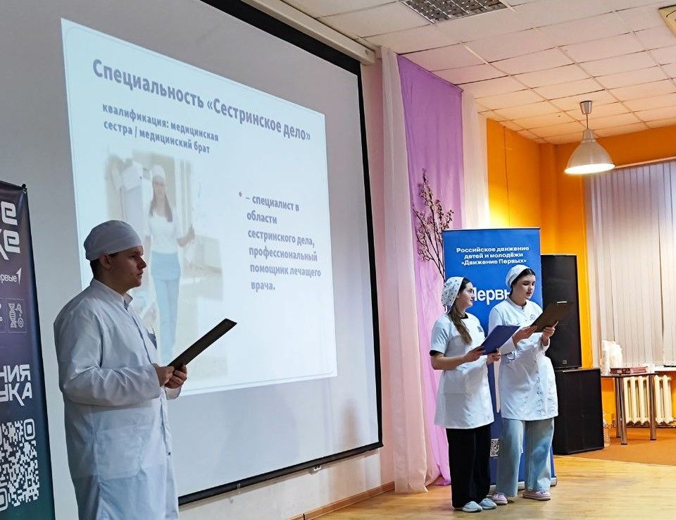 17 февраля 2026 года студенты 2 курса специальности «Сестринское дело» Гунько Александр, Жеребкина Анастасия и Кузьменко Екатерина и председатель первичного отделения Движения Первых в ГБПОУ РО «ТМК» Арсалан Ю.Г. приняли участие в Школе актива «ХимБио» для учеников 8-11 классов, интересующихся медицинской профессией.