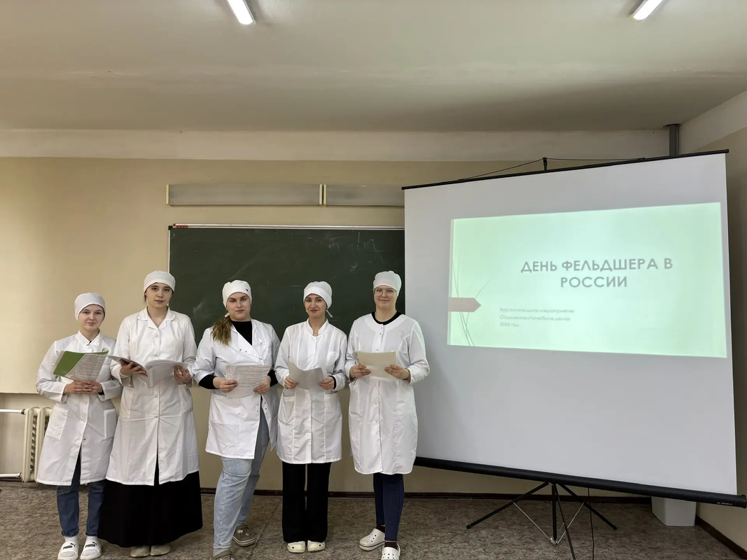Ежегодно 21 февраля в России отмечается профессиональный праздник День фельдшера. В рамках плана воспитательных мероприятий студенты группы 2В специальности Лечебное дело Гетьман Ольга, Анпилова Ксения, Петренко Ангелина, Гронцева Алина, Горобец Дарья под руководством куратора Черепахиной Н.А. провели поточное воспитательное мероприятие, посвященное данному событию. Участники мероприятия прослушали информационный материал в сопровождении подготовленной презентации.