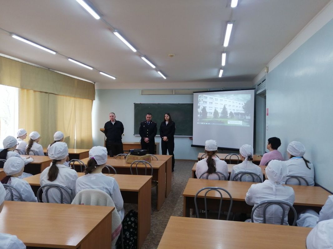 В рамках межведомственной комплексной оперативно-профилактической работы в ГБПОУ РО «ТМК» представителями ПДН ОП-2 УМВД России по г. Таганрогу в присутствии преподавателей колледжа была проведена профилактическая беседа с обучающимися 1 курса специальности «Сестринское дело».