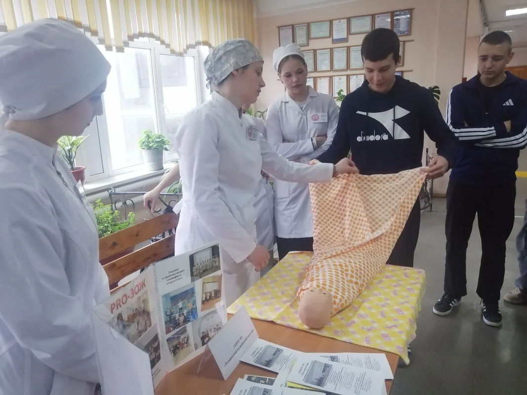 Волонтерскую группу ГБПОУ РО «ТМК» представляли студенты специальности «Сестринское дело» Безниско Софья, Воскобойникова Лия, Гасанова Камилла и Курочка Валерия, которые проводили с участниками фестиваля профориентационную работу и мастер-класс по пеленанию новорожденного.