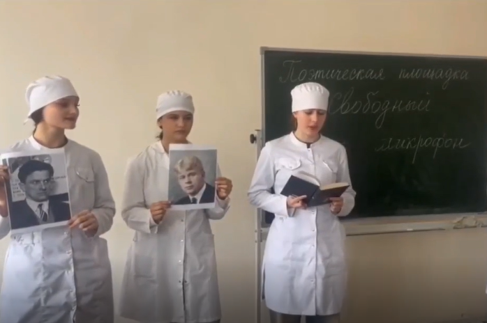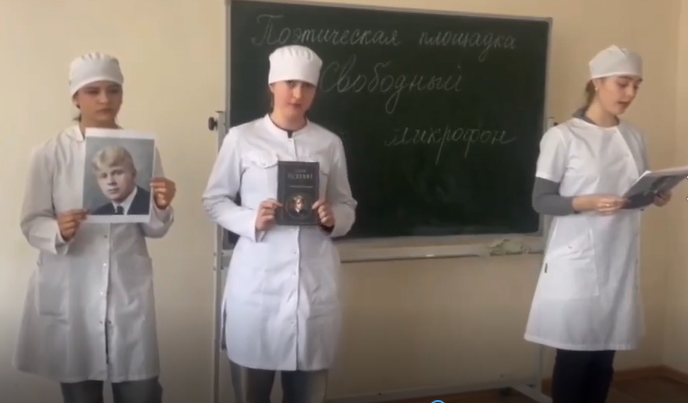 В рамках дня единых действий в ГБПОУ РО «ТМК» в рамках учебной дисциплины «Литература» в группах первого курса специальности «Лечебное дело» и «Сестринское дело» была организована открытая поэтическая площадка «Свободный микрофон», на которой желающие могли прочитать стихотворение любимого поэта или стихи собственного сочинения.