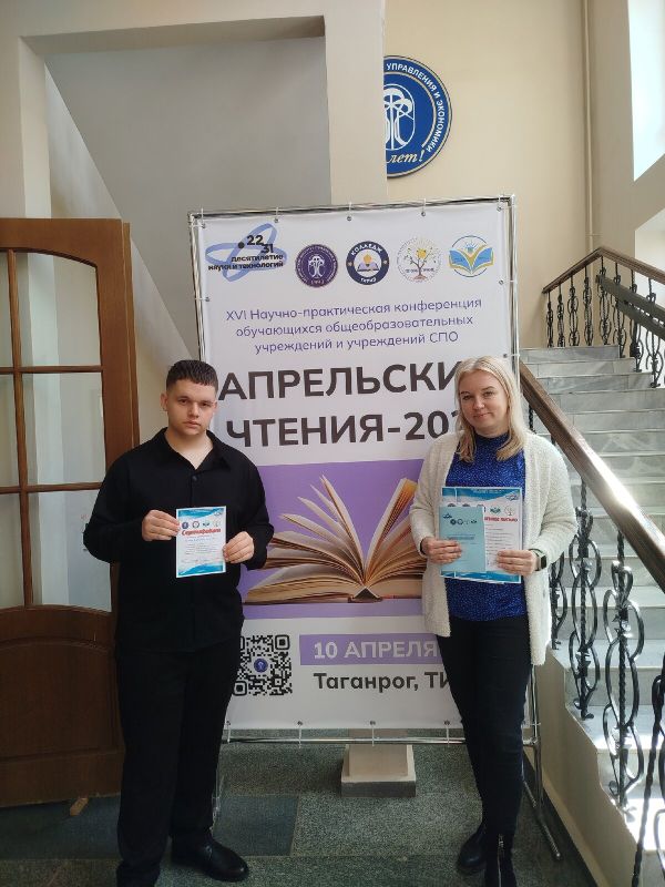 10 апреля 2026 года в Таганрогском институте управления и экономики состоялась XVI городская научно-практическая конференция для обучающихся общеобразовательных учреждений и учреждений среднего профессионального образования «Апрельские чтения – 2026», в которой приняли участие студенты и преподаватели ГБПОУ РО «ТМК»: гр.1-6 Марухно Дарья и Бахтина Елизавета (рук. Маслоченко Н.Ю.), гр.1-3 Ветлугина Мария, Копейкина Вероника, Мащенко Арина, Спасская Анастасия, Сутырина Софья и гр.1-2 Яковлева Екатерина (рук. Бекленищева М.О.), гр. 1Г Селюкова Анастасия и Серебрякова Александра (рук. Дульская О.А.) , гр. 2-6 Гунько Александр (рук. Никипелова Ю.С.) и гр. 1И Недвигина Ангелина и Сидоренко Ирина (рук. Демченко М.Б.).