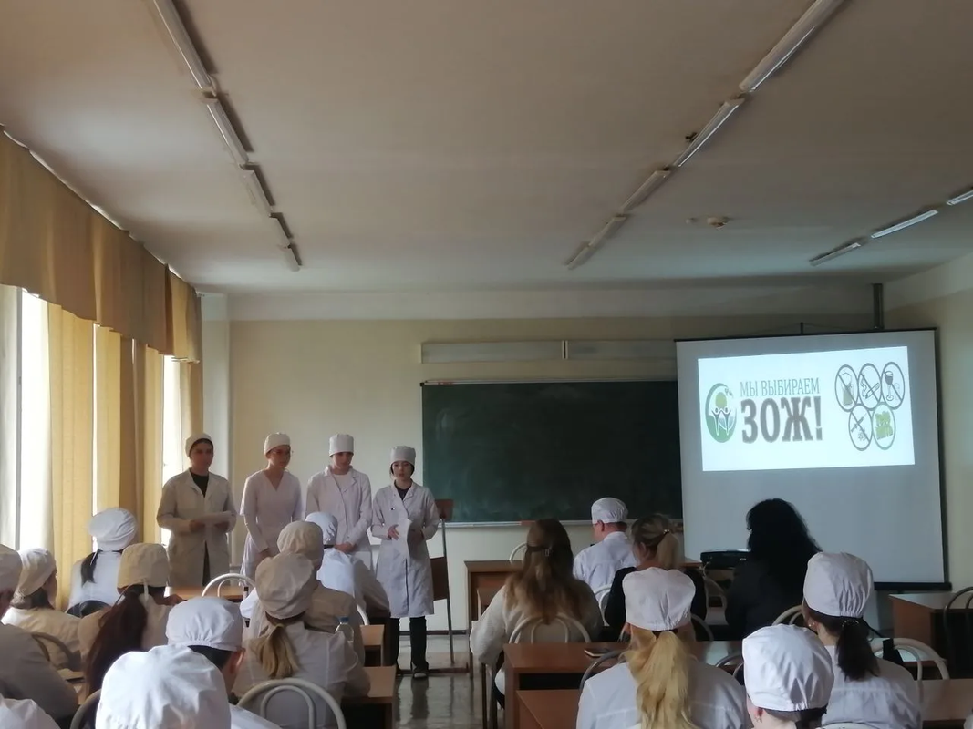 Вниманию студентов были представлены информационный блок, познавательный видеоролик и презентация «Мы - за здоровый образ жизни!». Актив группы 2Б в доступном формате рассказал как формировать здоровые привычки и отказаться от вредных. Особое внимание было уделено формированию профессиональных компетенций будущих медицинских работников в сфере профилактики заболеваний.