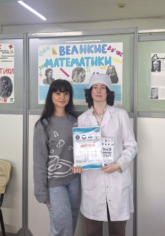 - Яковлева Екатерина Николаевна студентка группы 1-2, доклад «Роль теории вероятностей в медицине», руководитель Бекленищева Марина Олеговна - Диплом III степени,